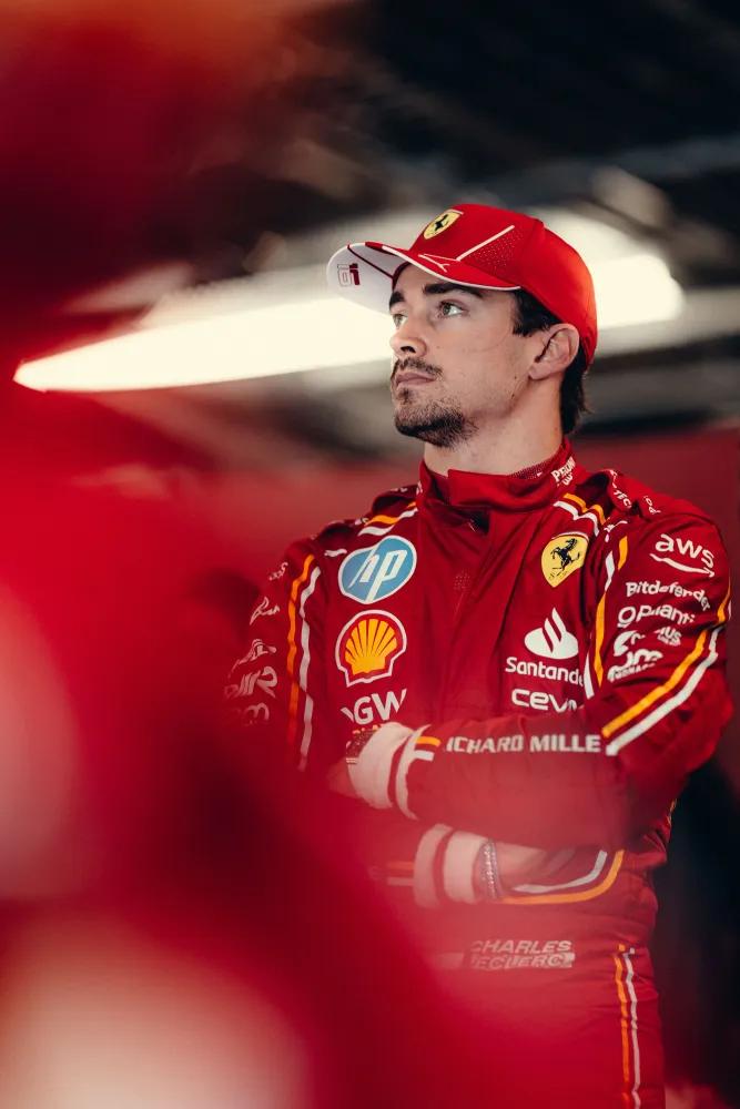 Purosangue, literally translated, means pure blood, which is the Italian word for thoroughbred. And this racehorse is whisking me to the F1 paddock before the qualifying races to meet with none other than Charles Leclerc. Fresh off his historic hometown win in Monaco, Scuderia Ferrari’s star driver is the man of the hour. Young, handsome, famously polite and tremendously talented, he’s one of the most endearing top athletes in the world.